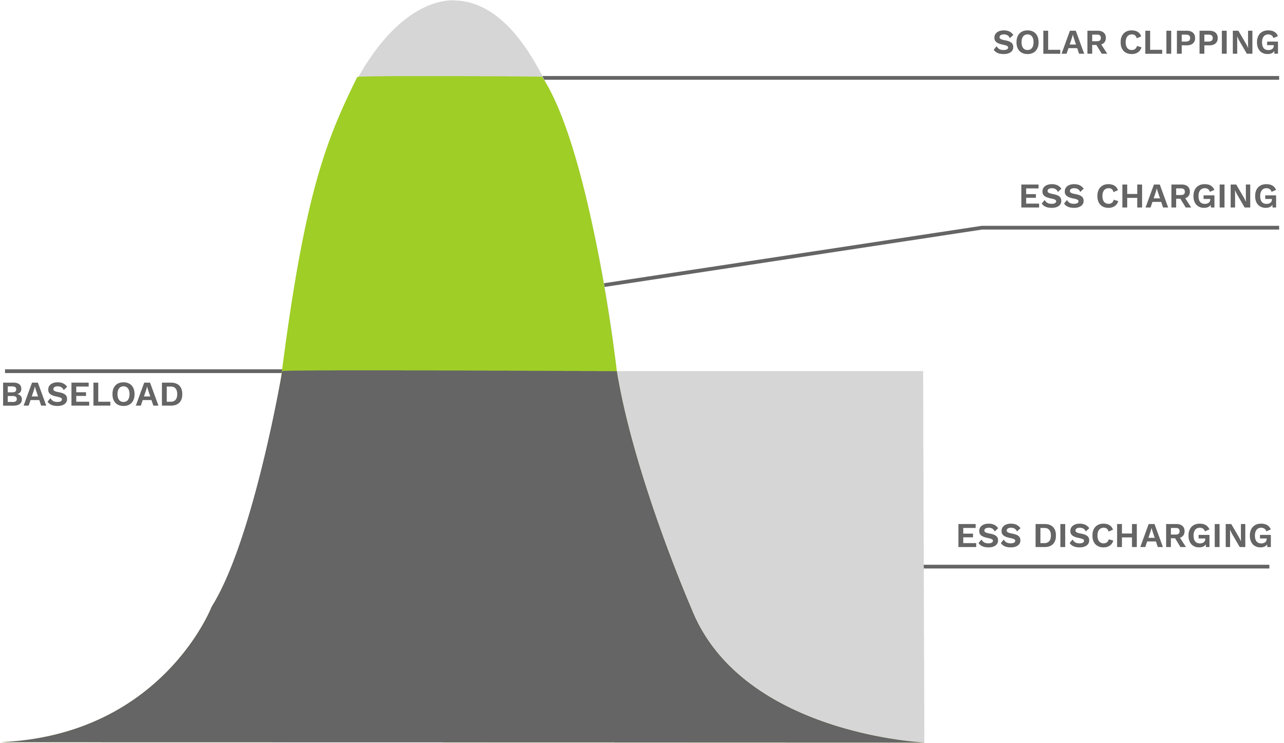 DC-Coupled Energy Storage not only recaptures the clipped energy but can enable DC ratios of 2+. This equates to a >40% reduction in the amount of solar inverter required (AC). conversely, >60% more DC solar to be installed behind a given AC interconnection limit. Additionally, the Energy Storage System will organicallyshift energy from the middle of the day (belly of the duck) to the evening when solar is ramping down (head of the duck).